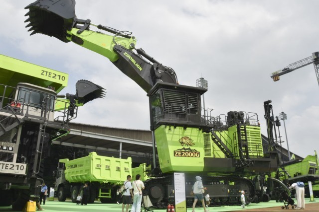 这是2025年5月16日在第四届长沙国际工程机械展览会上拍摄的大型矿山机械。