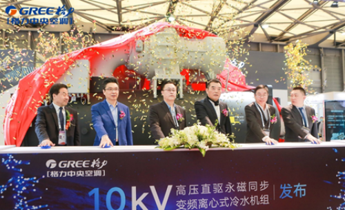 上午10时许,格力在主展位正式发布新品——10kV高压直驱永磁同步变频离心机组。中国勘察设计协会建筑环境与能源应用分会会长罗继杰设计大师,格力电器总裁助理、副总工程师刘华等领导嘉宾出席本场发布会。